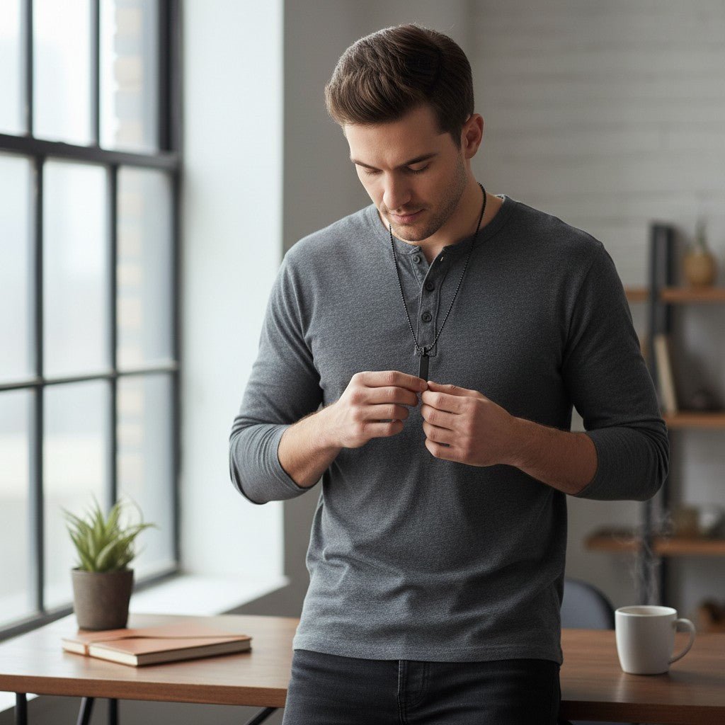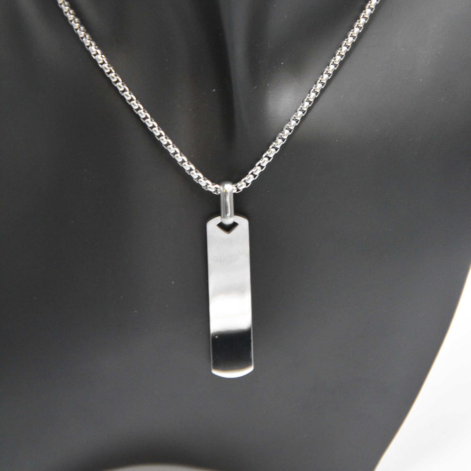 The Eterna Chain Necklace is a modern stainless steel necklace featuring a 4cm engravable pendant. Available in Gold, Silver, and Black, this necklace can be personalised with initials, dates, or a short message, creating a meaningful and stylish accessory. Durable and elegant, the Eterna Chain Necklace combines contemporary design with the versatility of custom engravings, making it perfect for gifting or personal wear.