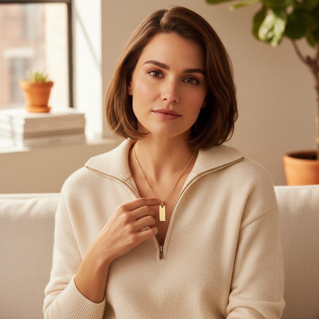 The Noir Chain Necklace is a sleek stainless steel necklace featuring a 2.5cm engravable pendant. Available in Gold and Silver, this necklace can be personalised with initials, dates, or a short message, creating a meaningful and stylish piece. Perfect as a gift or for elevating your own jewellery collection, the Noir Chain Necklace combines durability with timeless elegance.
